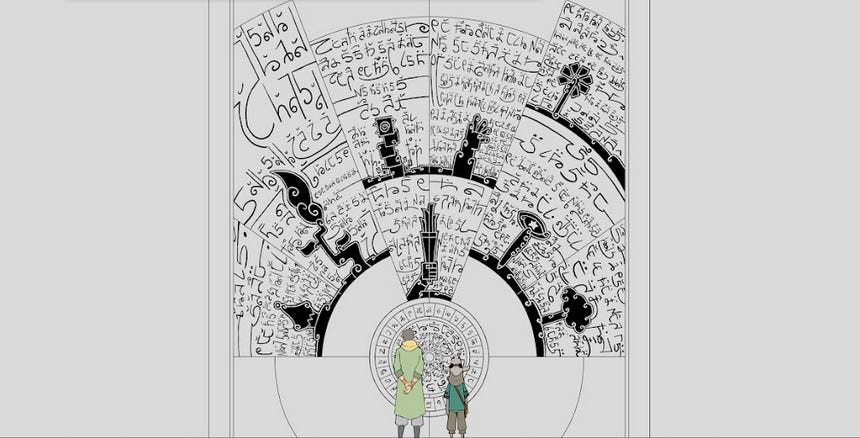 So to that end, we’re leaving several of the panels blank and creating a campaign reward tier for backers to come up with their own mythology, which will then be translated into Nymeran, and then incorporated on the cypher.