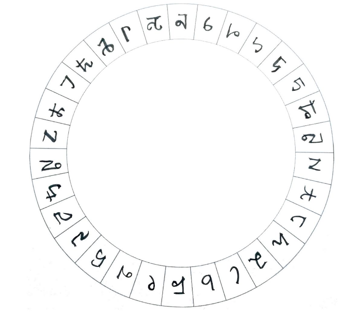 Y’know what really complicates workflow? Inventing a fictional language, and incorporating it into various aspects of the comic, that’s what! So, the workflow for this cypher goes a little something like this: