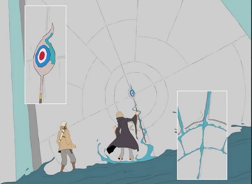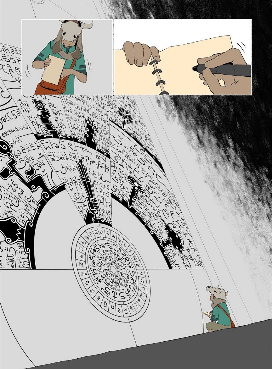 For Issue #8, since so much of the issue revolves around revealing some of the mysteries of Old Nym, I knew that I wanted to feature some sort of puzzle for Koken to solve that would show off his brains while revealing a little (or a lot) more of Nymeran for those curious enough to dig deeper.